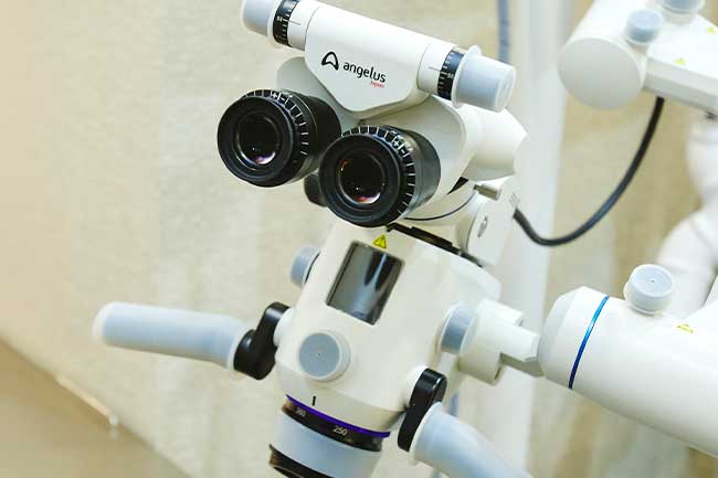 マイクロスコープ:マイクロスコープは肉眼の25倍まで拡大して治療が行えます。