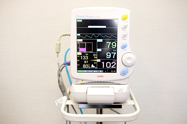 生体管理モニター:全身的に問題のある患者様やオペ時に使用しモニタリングしながら安全な治療を行います。